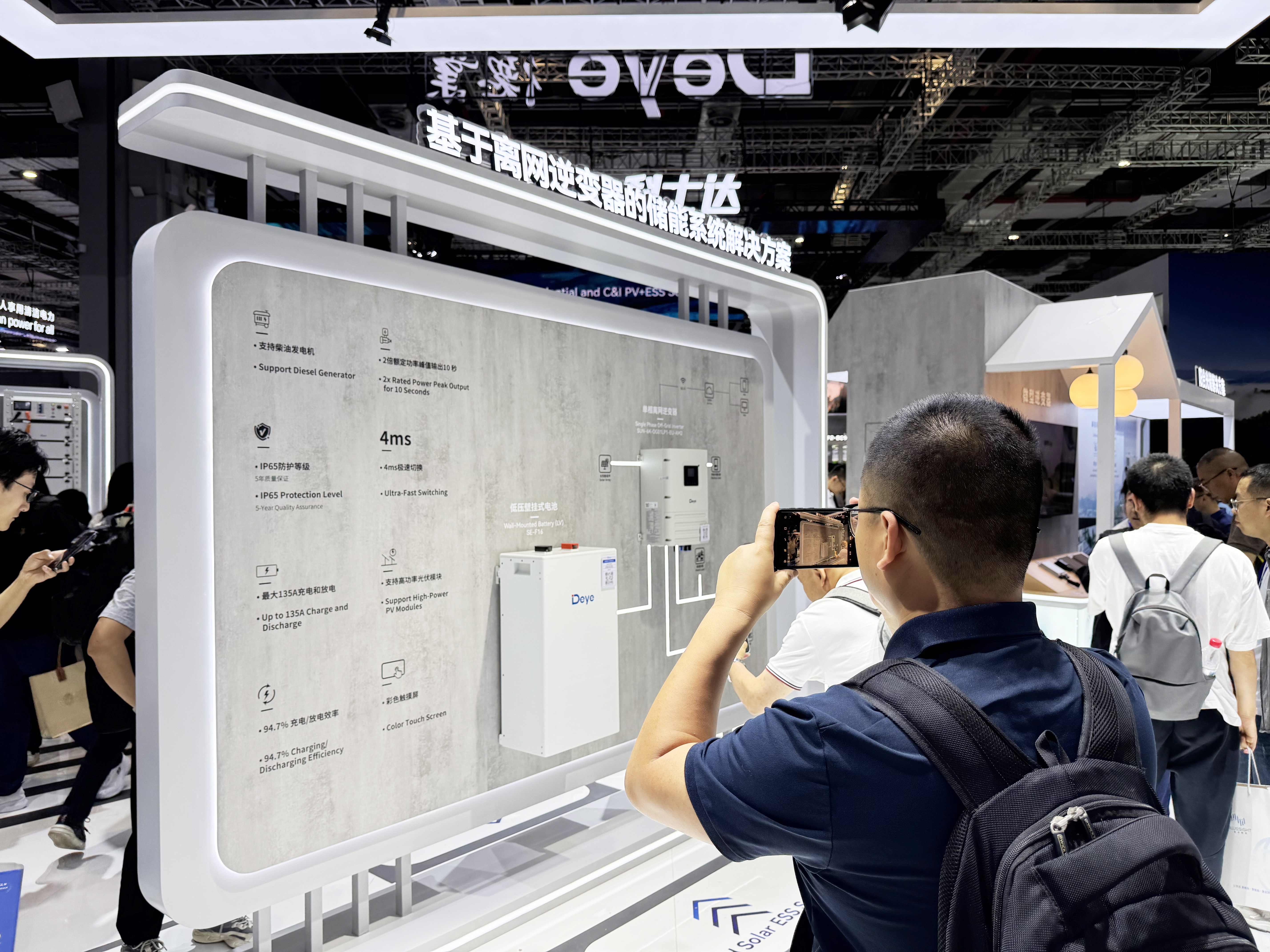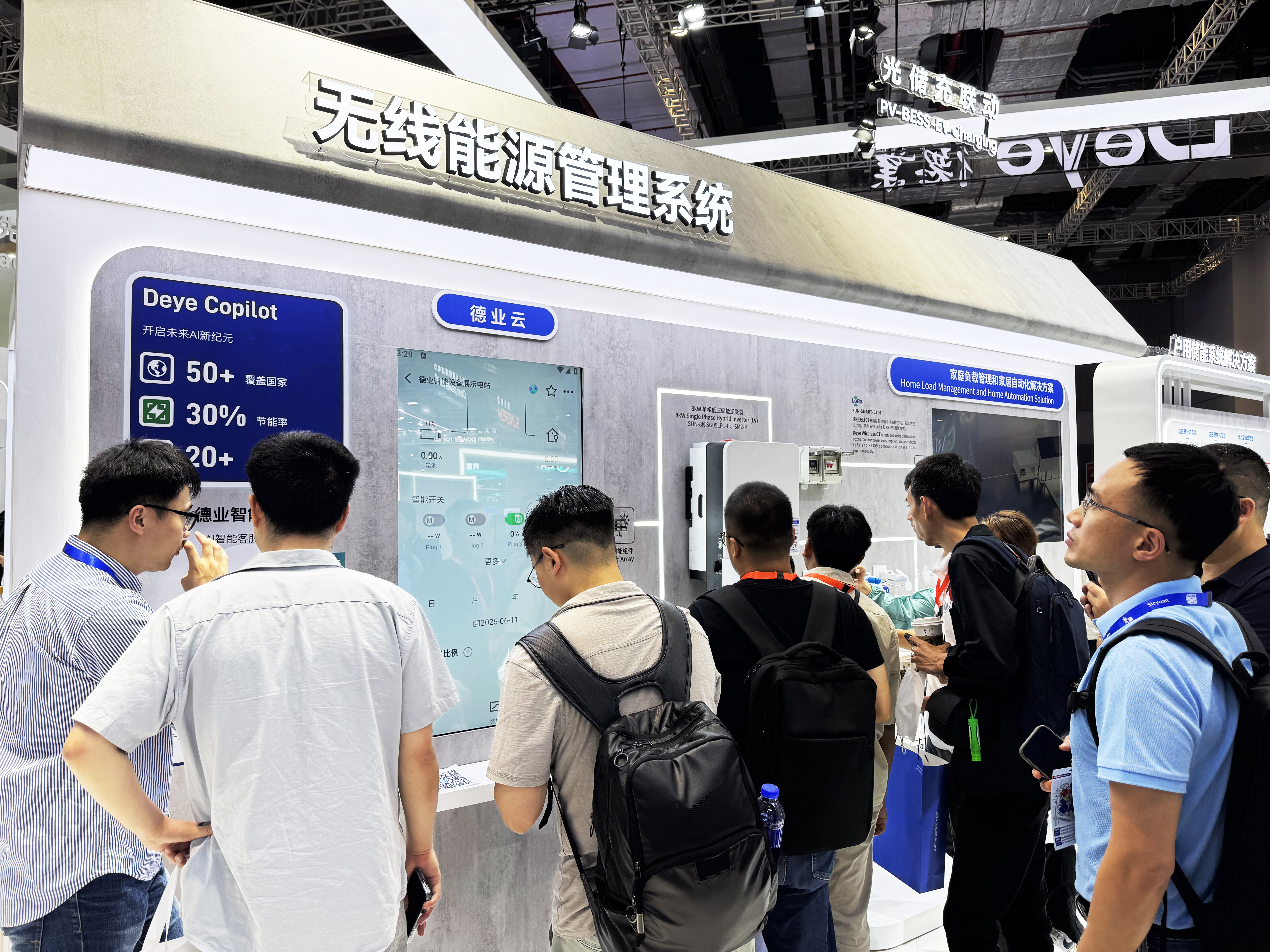 Trong phân khúc lưu trữ năng lượng dân cư, DEYE đã trình bày nhiều sản phẩm hàng đầu, bao gồm bộ biến tần lai điện áp thấp ba pha 20kW và thiết lập một bức tường Hệ thống quản lý năng lượng không dây (EMS) (EMS) cho các cuộc biểu tình trực tiếp. Khách truy cập trải nghiệm giao tiếp có độ trễ thấp dựa trên Lora liền mạch để quản lý tải và tự động hóa nhà.
