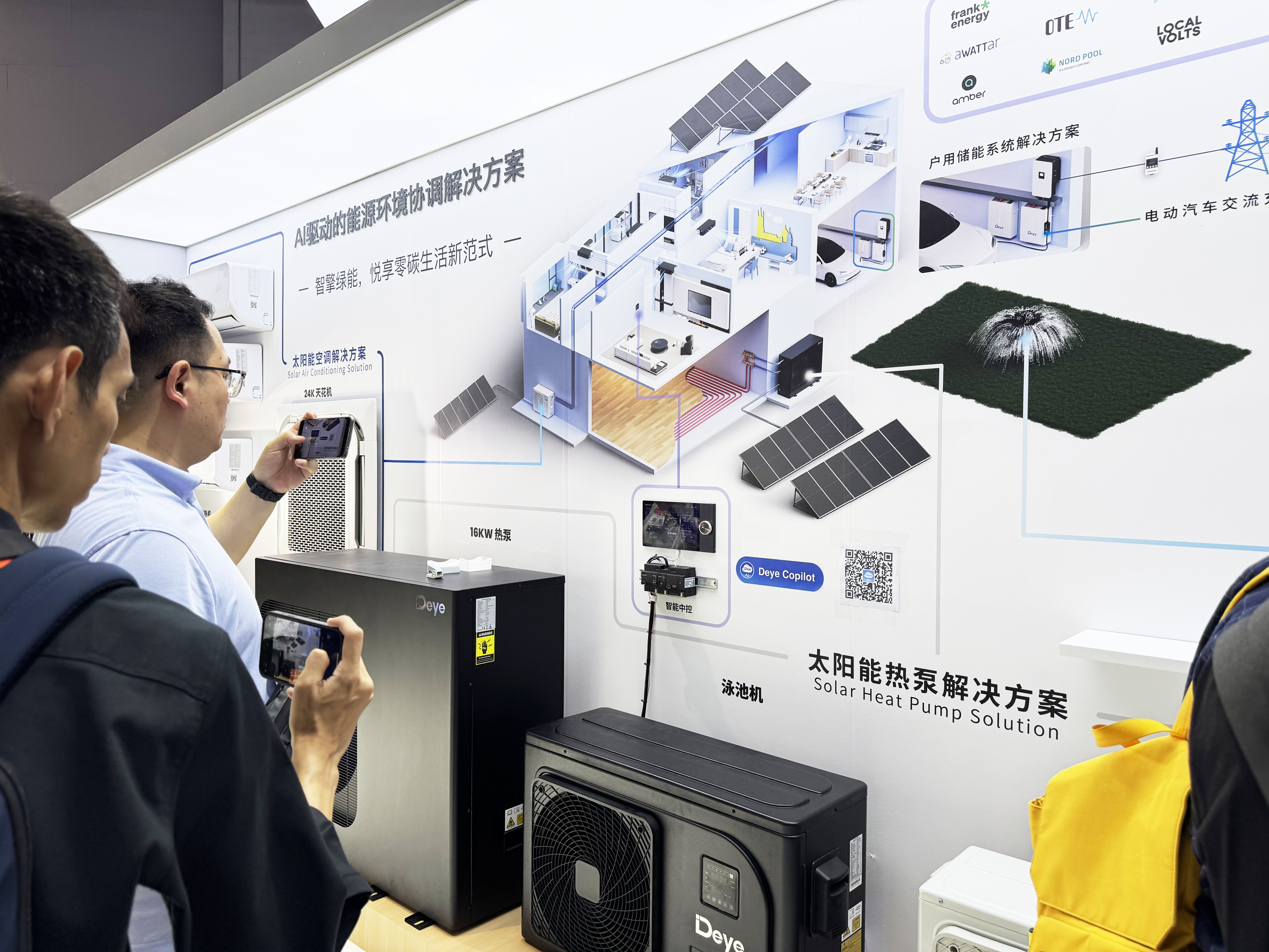 Deye luôn cam kết thúc đẩy những đổi mới thực tế nơi phần cứng và phần mềm hội tụ. Tại triển lãm này, Deye đã ra mắt Giải pháp Synergy Energy & Môi trường, nơi kết nối các mạng năng lượng gia đình với các hệ sinh thái nhà thông minh truyền thống. Giải pháp này tích hợp liền mạch các hệ thống lưu trữ năng lượng của Deye với máy điều hòa không khí mặt trời tự phát triển, máy bơm nhiệt và máy bơm nước, đồng thời hỗ trợ kết nối với các nền tảng Apple HomeKit & Amazon Alexa cho khả năng tương tác thiết bị nhà thông minh thương hiệu. Được cung cấp bởi tối ưu hóa điều khiển AI, hệ thống cho phép quản lý thống nhất các microgrids và môi trường vi khí hậu.